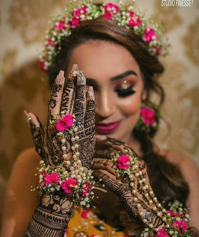 Arabic mehndi involves a mix of floral artwork along with geometric patterns, resulting in gorgeous, bold designs.